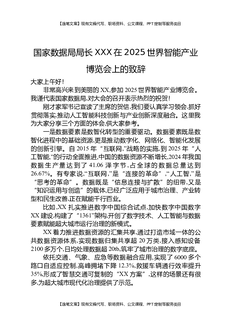 国家数据局局长XXX在2025世界智能产业博览会上的致辞.docx