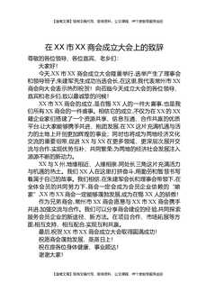 在XX市XX商会成立大会上的致辞.docx