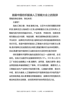 首届中国纺织服装人工智能大会上的致辞.docx