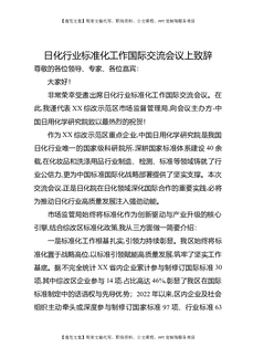 日化行业标准化工作国际交流会议上致辞.docx