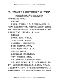 XX校友会成立十周年庆典暨第二届长三角纺织服装校友经济论坛上的致辞.docx