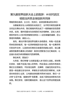 第九届世界创新大会上的致辞:AI时代的文明担当共筑全球创新共同体.docx