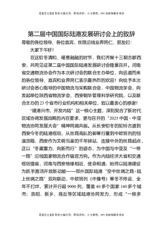 第二届中国国际陆港发展研讨会上的致辞.docx