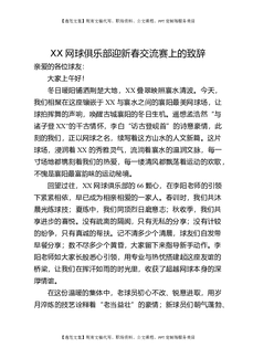 XX网球俱乐部迎新春交流赛上的致辞.docx