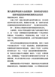 第九届世界创新大会的致辞:加快形成与前沿创新相适应的体制机制和社会生态.docx