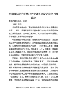 金融驿站助力现代化产业体系建设交流会上的致辞.docx