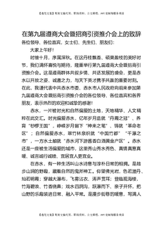 在第九届遵商大会暨招商引资推介会上的致辞.docx