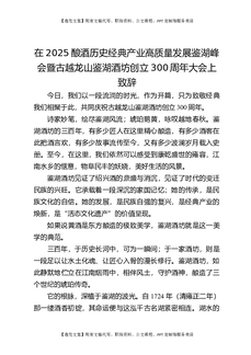在2025酿酒历史经典产业高质量发展鉴湖峰会暨古越龙山鉴湖酒坊创立300周年大会上致辞.docx