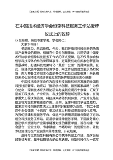 在中国技术经济学会恒挚科技服务工作站授牌仪式上的致辞.docx