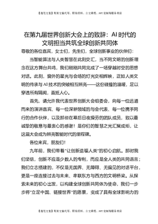 在第九届世界创新大会上的致辞:AI时代的文明担当共筑全球创新共同体.docx