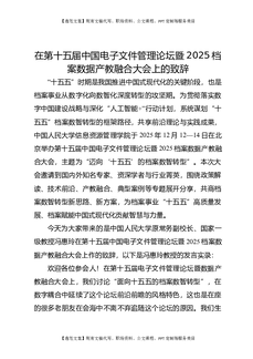 在第十五届中国电子文件管理论坛暨2025档案数据产教融合大会上的致辞.docx