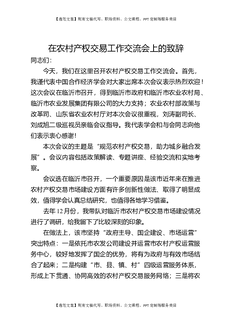 在农村产权交易工作交流会上的致辞.docx