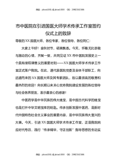 市中医院在引进国医大师学术传承工作室签约仪式上的致辞.docx