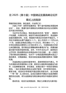 在2025(第十届)中国储运发展高峰论坛开幕式上的致辞.docx