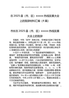 在2025县(市、区)XX热线发展大会上的致辞材料汇编(4篇).docx