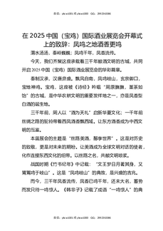 在2025中国(宝鸡)国际酒业展览会开幕式上的致辞:凤鸣之地酒香更鸣.docx
