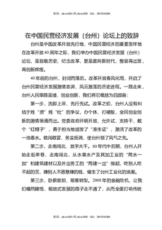 在中国民营经济发展(台州)论坛上的致辞.docx