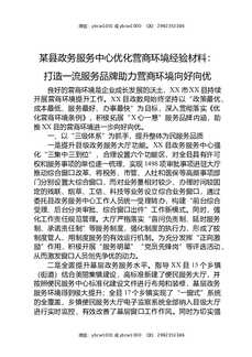 某县政务服务中心优化营商环境经验材料:打造一流服务品牌助力营商环境向好向优.docx