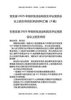 党支部2025年组织生活会和民主评议党员会议上的主持词及讲话材料汇编(3篇).docx