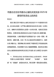 市委办主任在市委办公室机关党支部2025年度组织生活会上的讲话.docx