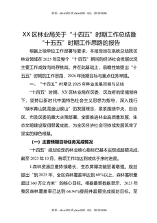 XX区林业局关于“十四五”时期工作总结暨“十五五”时期工作思路的报告.docx