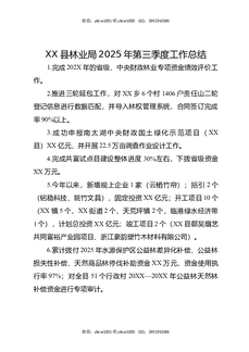 XX县林业局2025年第三季度工作总结.docx