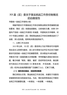 XX县(区)委关于落实统战工作责任制情况的自查报告.docx