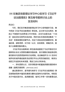 XX在集团党委理论学习中心组学习《习近平谈治国理政》第五卷专题研讨会上的发言材料.docx