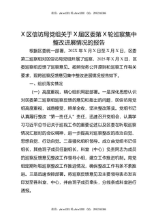 X区信访局党组关于X届区委第X轮巡察集中整改进展情况的报告.docx