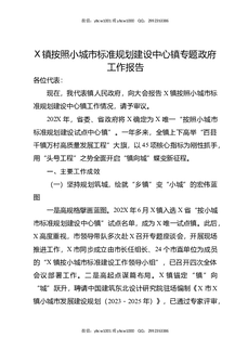 X镇按照小城市标准规划建设中心镇专题政府工作报告.docx