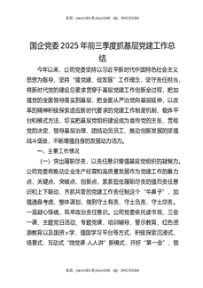 国企公司党委2025年前三季度抓基层党建工作总结.docx