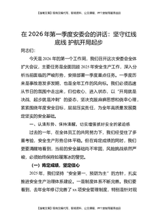 在2026年第一季度安委会的讲话:坚守红线底线,护航开局起步.docx