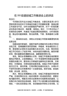 在XX街道创城工作推进会上的讲话.docx