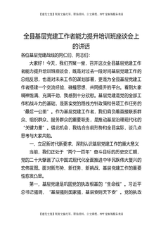 全县基层党建工作者能力提升培训班座谈会上的讲话.docx