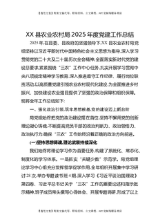 XX县农业农村局2025年度党建工作总结.docx