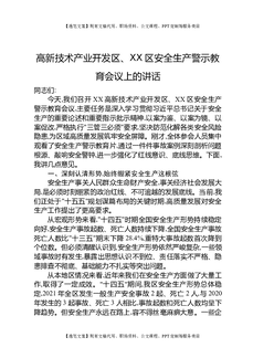 高新技术产业开发区、XX区安全生产警示教育会议上的讲话.docx