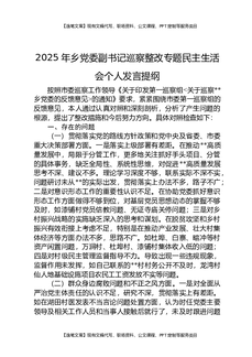 2025年乡党委副书记巡察整改专题民主生活会个人发言提纲.docx
