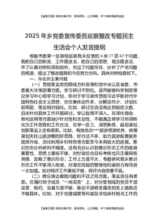 2025年乡党委宣传委员巡察整改专题民主生活会个人发言提纲.docx