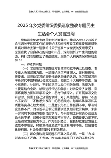 2025年乡党委组织委员巡察整改专题民主生活会个人发言提纲.docx