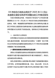 XX市综合行政执法局关于2025年11月以来道路交通安全秩序专项整治的工作情况报告.docx
