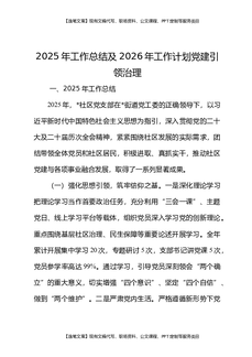 2025年工作总结及2026年工作计划党建引领治理.docx