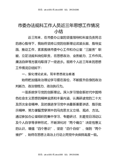 市委办法规科工作人员近三年思想工作情况小结.docx