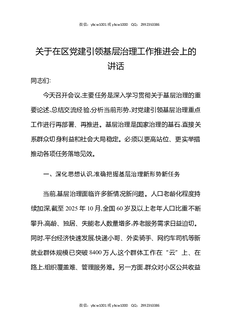 关于在区党建引领基层治理工作推进会上的讲话.docx