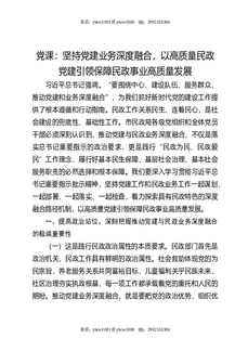 党课:坚持党建业务深度融合,以高质量党建引领保障民政事业高质量发展.docx
