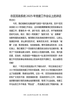 在区民政系统2025年党建工作会议上的讲话.docx