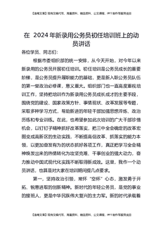 在2024年新录用公务员初任培训班上的动员讲话.docx