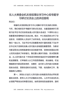 在人大常委会机关党组理论学习中心组专题学习研讨交流会上的讲话提纲.docx