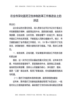 在全市深化医药卫生体制改革工作推进会上的讲话.docx