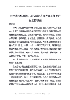 在全市深化县域内城乡融合发展改革工作推进会上的讲话.docx