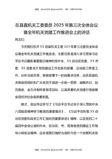 在县直机关工委委员2025年第三次全体会议暨全年机关党建工作推进会上的讲话.docx